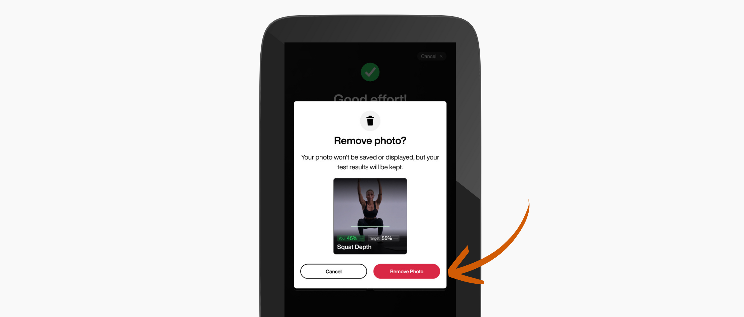 We also prioritise member privacy: Each member can choose whether or not to save or discard their Squat Flexibility Test images, ensuring compliance with strict health data privacy regulations.